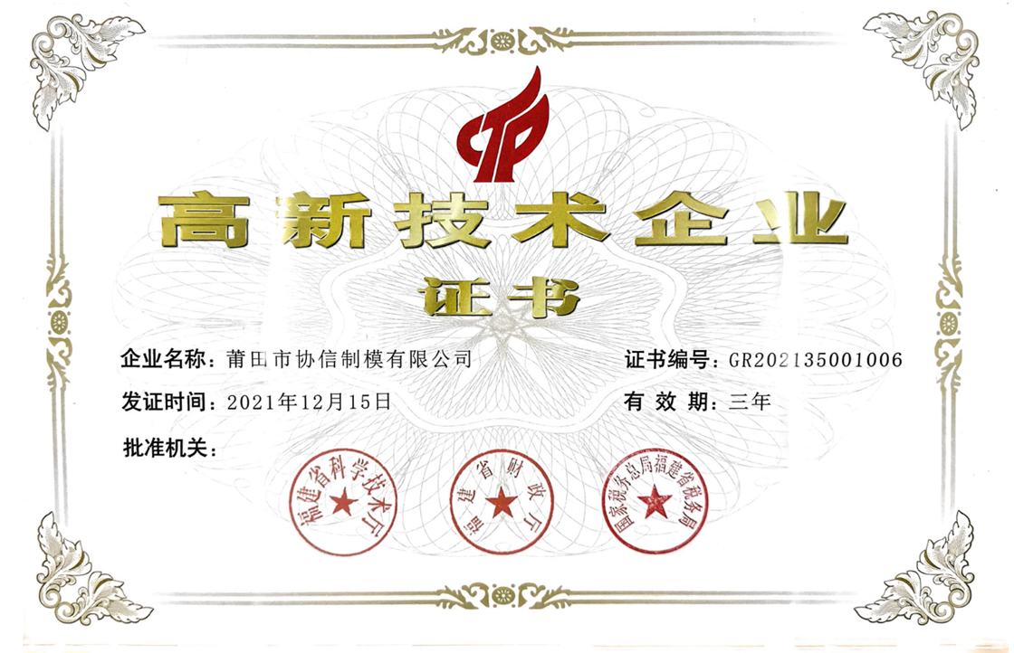 The company has a good reputation. Since 2014, and has been awarded the title of "large taxpayer" for many consecutive years. With strong management and technical force, the company has won the titles of "Fujian science and technology giant enterprise", "science and technology small and medium-sized enterprise" and "municipal enterprise technology center". In 2021, it was recognized as a "national high-tech enterprise" and passed the gb/t29490-2013 intellectual property management system certification.