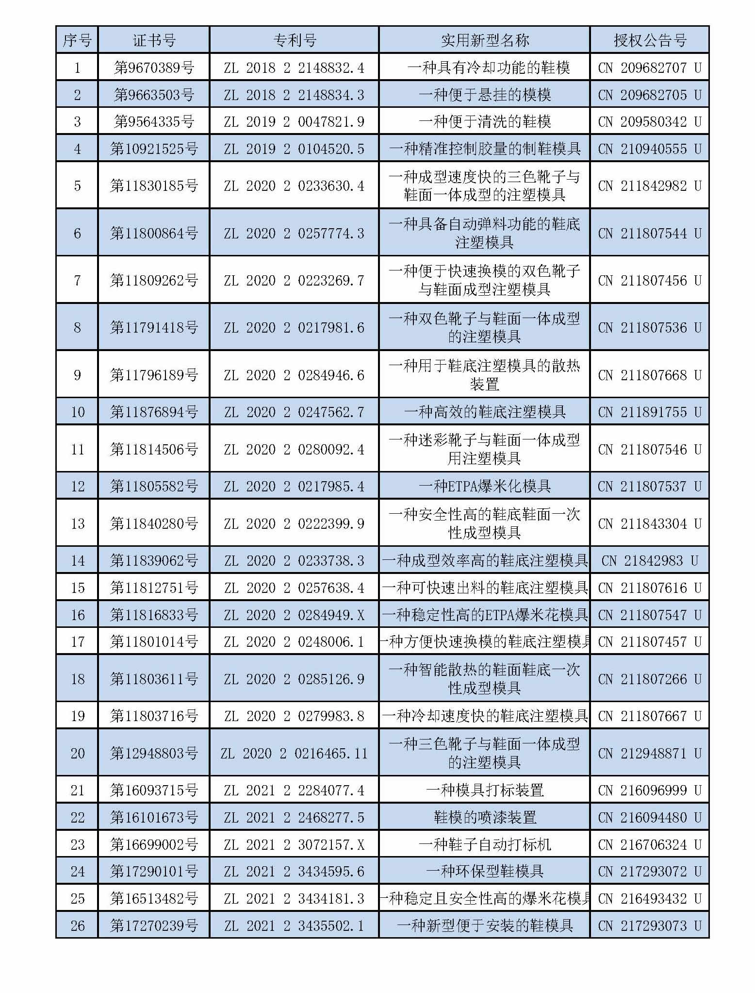 26 utility model patent certificates